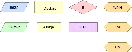 Flowgorithm propose la plupart des notions courantes que l'on retrouve dans les langages de programmation, aussi bien au niveau des instructions sous forme graphique que des expressions évaluables :