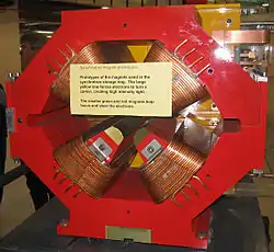 Le théorème d'Earnshaw interdit la focalisation simultanée dans deux directions à la fois. Cependant, les pôles striés d'un cyclotron ou de deux ou plusieurs aimants quadrupolaires espacés (disposés en quadrature) focalisent alternativement horizontalement et verticalement[1],[2].