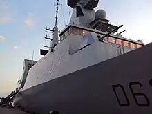 | Armement | 8 MM40 Exocet block3 32 missiles Aster 30 et 16 missiles Aster 15, avec une réserve de place pour 16 missiles supplémentaires 2 canons Otobreda 76 mm 3 canons téléopérés Narwhal 20 mm 2 tubes lance-torpilles MU90 |
