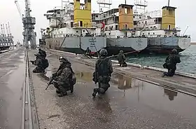 Forces spéciales du GROM (Pologne) en surveillance au port maritime de Umm Qasr lors de la guerre d'Irak en 2003.