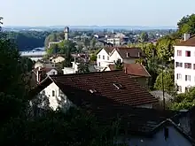 L'occupation des sols de la commune, telle qu'elle ressort de la base de données européenne d’occupation biophysique des sols Corine Land Cover (CLC), est marquée par l'importance des territoires agricoles (40,7 % en 2018), néanmoins en diminution par rapport à 1990 (48 %). La répartition détaillée en 2018 est la suivante : forêts (28 %), zones agricoles hétérogènes (24,7 %), zones urbanisées (20,6 %), terres arables (9,4 %), prairies (6,6 %), milieux à végétation arbustive et/ou herbacée (3,7 %), espaces verts artificialisés, non agricoles (2,6 %), eaux continentales[Note 3] (2,1 %), zones industrielles ou commerciales et réseaux de communication (1,2 %), mines, décharges et chantiers (1,2 %)[18]. L'évolution de l’occupation des sols de la commune et de ses infrastructures peut être observée sur les différentes représentations cartographiques du territoire : la carte de Cassini (XVIIIe siècle), la carte d'état-major (1820-1866) et les cartes ou photos aériennes de l'IGN pour la période actuelle (1950 à aujourd'hui)[Carte 1].