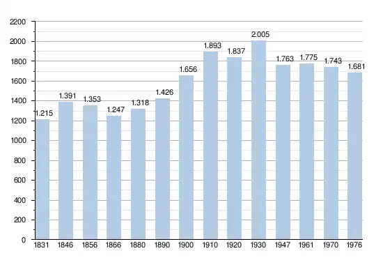 - Sources : INS, Rem. : 1831 jusqu'en 1970 = recensements, 1976 = nombre d'habitants au 31 décembre.