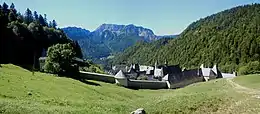 Surnommée l'Auberge des coucous, ou l'Auberge des intellectuels fatigués, cette Maison universitaire reste ouverte jusqu'à l'automne 1939. Le retour des moines en juin 1940, lié à la déclaration de guerre de l'Italie à la France[15], en même temps que l'instauration de l'État français, marque la fin de cette Maison universitaire, comme des possibilités de visite du monastère de la Grande Chartreuse. Le 6 juillet 1940, Paul Claudel salue dans son journal les deux évènements: « La France est délivrée après 60 ans de joug du parti radical et anti-catholique (professeurs, avocats, juifs, francs-maçons). Le nouveau gouvernement invoque Dieu et rend la Grande-Chartreuse aux religieux. Espérance d'être délivré du suffrage universel et du parlementarisme, ainsi que de la domination méchante et imbécile des instituteurs qui lors de la dernière guerre se sont couvert de honte. Restauration de l’autorité" . (René Favier, La Maison universitaire de la Grande Chartreuse. L'Auberge des coucous, Grenoble, PUG, 2023). En , le consul français de Livourne conseilla au Père Général et aux moines français de Farneta de rentrer en France. L'imminence de l'entrée en guerre de l'Italie faisait craindre que les frontières vers la France, qui leur avaient été interdites avant la guerre, ne soient prochainement fermées. Dans le contexte de la débâcle, le Révérend Père général Dom Ferdinand Vidal, et ceux qui l'accompagnaient purent s'installer provisoirement à Orgeoise, dans le faubourg de Voiron (Isère), où demeuraient des frères convers chargés de la fabrication de la liqueur. Après avoir tenté en vain d'atteindre le gouvernement français replié à Bordeaux pour en obtenir la permission de rentrer à la Grande-Chartreuse, dom Vidal envoie des religieux pour réoccuper la Grande-Chartreuse, avant que les Allemands, qui étaient déjà à Voreppe, n'y arrivent. Les premiers pères se présentent le . Passant outre l'opposition du préfet de l'Isère, Perrier, le maire de Saint-Pierre-de-Chartreuse, M. Villars, réquisitionna le monastère « pour y abriter des réfugiés ». Le , Georges Mandel, ministre de l'Intérieur, régularise la situation de fait. Le l'Italie entre en guerre. Le , lendemain de l'annonce de l'armistice, trois Pères reprirent officiellement possession des bâtiments. Les orientations du nouveau gouvernement de Vichy, incontestablement favorable à l’Église et aux congrégations, créaient une situation favorable. La nomination par Pétain d'un nouveau préfet de l'Isère, Raoul Didkowski, facilita la réintégration. Une loi du gouvernement de Vichy le accorda aux Chartreux une reconnaissance légale en France. Durant ces années difficiles, la communauté ouvrit ses portes aux juifs et aux personnes pourchassées[16]. Il en alla de même au cours de la période de l'épuration qui suivit la guerre, au profit d'anciens collaborateurs et de miliciens, dont Paul Touvier[note 1].