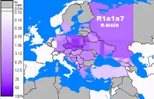 Répartition de l'haplogroupe R1a à travers l'Eurasie.