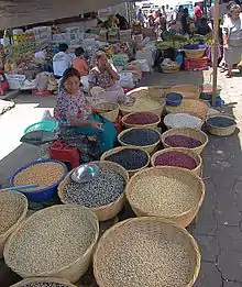 La domestication du haricot commun serait intervenue dans deux centres distincts, d'une part en Amérique centrale (variété vulgaris) et d'autre part en Amérique du Sud dans la région andine (variété aborigineus)[13]. Les variétés méso-américaines se distinguent de celles des Andes, notamment par la taille des grains qui sont plus gros chez ces dernières[14].