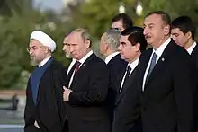 L’Iran (en persan : ايران, Irân), en forme longue la république islamique d'Iran (en persan : جمهوری اسلامی ايراﻥ, Jomhuriye Eslâmiye Irân ou JEI), est un pays d'Asie de l'Ouest, historiquement appelé la Perse[6]. Bordé au nord par la mer Caspienne, au sud-est par le golfe d'Oman et au sud par le golfe Persique, l'Iran partage des frontières avec le Turkménistan au nord-est, l'Afghanistan à l'est, le Pakistan au sud-est, l'Irak à l'ouest, la Turquie, l'Arménie et l'Azerbaïdjan au nord-ouest. Le pays a une superficie de 1 648 195 km2.