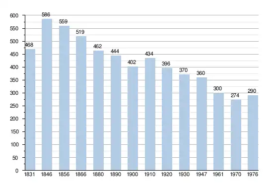 - Sources:INS, Rem:1831 jusqu'en 1970=recensements, 1976= nombre d'habitants au 31 décembre