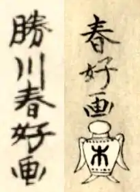 - (en) Cet article est partiellement ou en totalité issu de l’article de Wikipédia en anglais intitulé « Katsukawa Shunkō I » (voir la liste des auteurs).