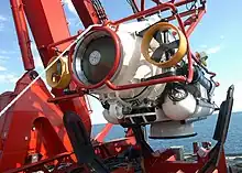 Il a été conçu pour porter secours aux sous-mariniers bloqués dans leur bâtiment en plongée et est capable de remonter 1 200 kg par rotation, soit environ 16 personnes.