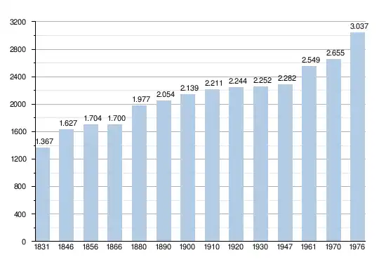 - Source: DGS , de 1831 à 1981=recensements population; à partir de 1990 = nombre d'habitants chaque 1 janvier