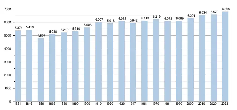- Source : DGS - Remarque: 1831 jusqu'à 1981=recensement; depuis 1990=nombre d'habitants chaque 1er janvier[4]