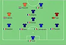 Deux ans plus tard, en 2000, il remporte l'Euro organisé en Belgique et aux Pays-Bas. Lors du quart de finale face à l'Espagne (victoire 2-1), Lilian Thuram est particulièrement mis en difficulté par Pedro Munitis et provoque un penalty, transformé par Gaizka Mendieta[28],[29]. C'est la dernière compétition où la défense Thuram-Blanc-Desailly-Lizarazu est alignée.