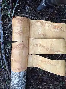 L'écorce de bouleau, ou mâchecoui au Canada, est un matériau traditionnel en Europe du Nord, en Russie, en Sibérie, au Canada et au nord des États-Unis. C'est un matériau souple, résistant et imperméable, qui se plie, se façonne et se coud aisément. Elle s'obtient facilement par incision superficielle des troncs et branches principales de diverses espèces de bouleau.