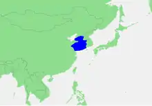 Cette zone est marquée par des hivers froids et secs avec un fort vent du nord soufflant de la fin novembre jusqu'en mars. La température moyenne de janvier est de −10 °C au nord et de 3 °C au sud, l'île de Jeju à l'extrême sud possédant déjà un climat subtropical. Les étés sont chauds et humides avec des typhons entre juin et octobre[2]. Les précipitations annuelles passent de 500 mm au nord à 1 000 mm au sud. Le brouillard est fréquent le long des côtes en particulier là où de l'eau froide remonte à la surface[1].