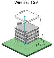 Un moyen possible d’augmenter les performances du transfert de données dans la pile de puces est d’utiliser des réseaux sans fil sur puce (WiNoC)[11].