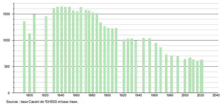 Le maximum démographique a été atteint en 1841 avec 1 638 habitants. Le minimum fut atteint en 1999 avec 642 habitants. En 2006, la population était de 660 habitants.