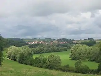 L'occupation des sols de la commune, telle qu'elle ressort de la base de données européenne d’occupation biophysique des sols Corine Land Cover (CLC), est marquée par l'importance des forêts et milieux semi-naturels (53,6 % en 2018), une proportion identique à celle de 1990 (53,7 %). La répartition détaillée en 2018 est la suivante : forêts (48,7 %), terres arables (20,3 %), prairies (17,9 %), zones agricoles hétérogènes (6,6 %), milieux à végétation arbustive et/ou herbacée (4,9 %), zones urbanisées (1,6 %)[13]. L'évolution de l’occupation des sols de la commune et de ses infrastructures peut être observée sur les différentes représentations cartographiques du territoire : la carte de Cassini (XVIIIe siècle), la carte d'état-major (1820-1866) et les cartes ou photos aériennes de l'IGN pour la période actuelle (1950 à aujourd'hui)[Carte 1].