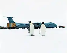 Un Lockheed C-141 Starlifter de l'US Air Force lors d'une opération Deep Freeze.