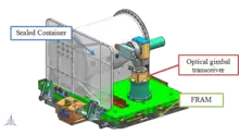 • La tête optique orientable (Optical Gimbal Transceiver) comprend une caméra permettant de recevoir le signal montant et un laser collimaté destiné à transmettre des données au sol. Cet ensemble est orientable avec deux degrés de liberté.