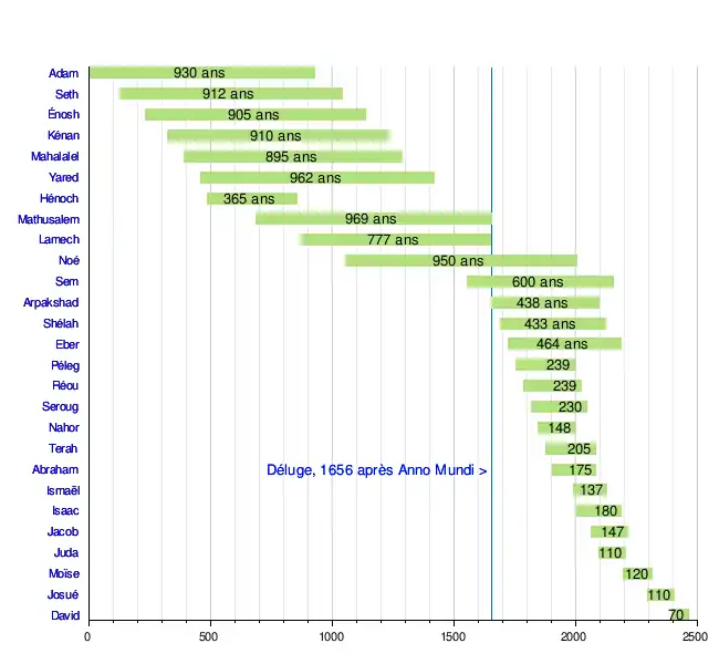 Noé engendra Sem, Cham et Japhet à 500 ans... Noé avait 600 ans quand il y eut le déluge.