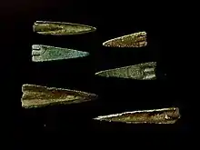 Les Scythes commencent à s'étendre vers le sud en suivant la côte de la mer Caspienne pour parvenir ensuite dans la steppe ciscaucasienne, à partir de laquelle ils s'installent dans la zone située entre les rivières Araxe et Koura, avant de s'étendre au sud dans l'actuel Azerbaïdjan et vers l'est de la Transcaucasie. L'Asie du Sud-Ouest devient le centre d'opérations des Scythes jusqu'au début du VIe siècle av. J.-C.[37]. Cette présence dans la steppe ciscaucasienne exerce une influence sur la culture scythe : l'acinace (un poignard) et les pointes de flèches en bronze à douille à trois tranchants, qui, bien qu'elles soient considérées comme des armes « typiquement scythes », sont en fait d'origine transcaucasienne et ont été adopté par les Scythes lors de leur séjour dans le Caucase[38]. Dans le même temps, les pointes de flèches scythes typiques, qui pourraient être originaires de Sibérie, auraient été introduites en Asie du Sud-Ouest par les Scythes[39].