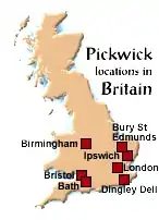 Quant au nom, il a été emprunté à un certain Moses Pickwick, transporteur assurant la liaison Bath-Londres et propriétaire d'hôtels à Bath, notamment l'auberge du Cerf blanc (White Hart)[45], intégrée au chapitre 35 lorsque les Pickwickiens se rendent en cette ville[46]. Le personnage de Pickwick change au cours de l'histoire, mais Dickens se défend de l'avoir vraiment voulu : plutôt que M. Pickwick, remarque-t-il dans la même préface, c'est le regard que lui porte le lecteur qui a varié, tant il est vrai que l'habitude qu'on acquiert des gens, surtout lorsqu'ils sont aussi originaux et capricieux que M. Pickwick, « oblige à y regarder de plus près et à reconnaître le meilleur de leur être sous les traits superficiels » (« it isn't before we are better acquainted with him that we usually begin to look below these superficial traits, and to know the better part of him »)[44].