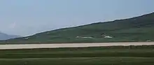 Plage surélevée sur Harris (Écosse) : ici l'érosion tend à faire disparaître les traits distinctifs de ce type de relief.