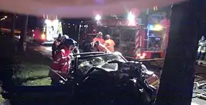 Sortie d'une victime sur plan dur après dépavillonnage de la voiture