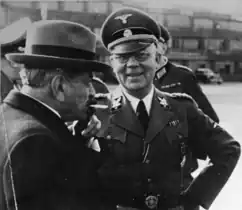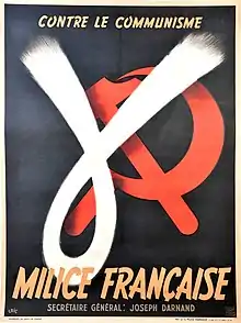 Au cours de la Seconde Guerre mondiale, cette collaboration prend plusieurs formes : coopération économique, arrestations de résistants, de francs-maçons, d'ecclésiastiques catholiques, et d'opposants politiques (notamment communistes), rafles de Juifs français et étrangers, réfugiés en France avec la montée du nazisme dans les années 1930, sur le territoire métropolitain, remis aux Allemands et déportés vers les camps d'extermination nazis. Sur le plan militaire, le régime n’est pas un allié officiel du Troisième Reich mais le sixième gouvernement Laval reconnaît la Légion des volontaires français (LVF) comme une association d’utilité publique[8] et contribue aussi à l’effort de guerre allemand au moyen de la collaboration de son industrie militaire. Il fournit en outre à l’occupant une force armée supplétive de répression en métropole, avec la Milice française, responsable d'exactions meurtrières sur tout le territoire. Au regard du peu de troupes d'occupation allemandes réparties sur un territoire aussi grand que la France, l'ordre nazi n'aurait pu s'exercer sans la totale implication de toute la machine étatique, policière et administrative française alors sous les ordres du régime de Vichy, ce qui reste un exemple unique dans les pays d'Europe occupés.