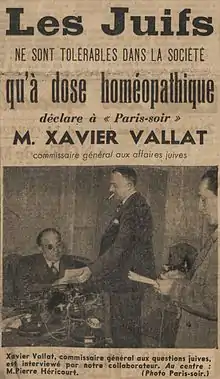 En revanche, l'Église n'obtient pas le droit d'enseigner la religion à l'école publique. Malgré cela, l'épiscopat reconnaît la légitimité du régime du maréchal jusqu'en 1944. Cette légitimation n'empêche pas plusieurs prélats d'exprimer publiquement des critiques, par exemple au sujet des déportations des Juifs, à partir de , qui marque une rupture dans l'opinion publique. Des fidèles et des prêtres, tels que Jules Saliège, alors archevêque de Toulouse, et l'abbé Glasberg (à Lyon) rappellent avec insistance l'incompatibilité de la ségrégation raciale avec le christianisme et prennent ainsi des risques. Jules Saliège n'échappera ainsi à la déportation par l'occupant qu'en raison de son âge et de son état de santé précaire[39]. Glasberg devra se cacher auprès de Théas, l'évêque de Montauban, lui-même arrêté par la Gestapo le . Un certain nombre de catholiques se détachent nettement du régime et s'engagent dans la Résistance. C'est Georges Bidault, président du Conseil national de la Résistance et fondateur de la démocratie chrétienne, qui demandera à de Gaulle en 1944 l'éviction d'une longue liste d'évêques compromis avec Vichy[40],[41].