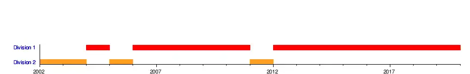 | 2014-2015 | D1 | 4e | 41 | 33 | 14 | 10 | 9 | 39 | 28 | +11 | 5 372 | 1/4 de f. | - | - |