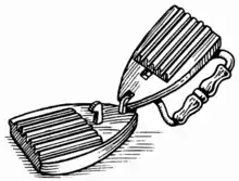 - Un dispositif permettant de mettre le fer au repos, habituellement en le posant verticalement sur son extrémité, afin d'empêcher tout contact entre la partie chaude et la table ou les vêtements.