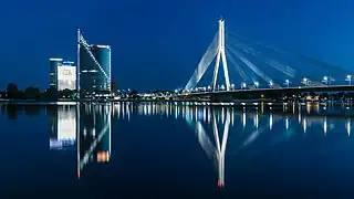 Riga (/ʁi.ga/, en letton : Rīga /riː.ga/) est la capitale de la Lettonie. Construite sur la mer Baltique au fond du golfe de Riga, dans lequel se jette la Daugava, c'est un centre industriel, commercial, culturel et financier majeur de la région de Vidzeme.