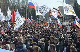 Après l'indépendance de l'Ukraine en 1991, lors du référendum sur l'indépendance de l'Ukraine de 1991, 92 % (dont 55 % de Russes ethnique) ont voté pour l'indépendance du pays[6], mais certains Ukrainiens, principalement dans l'est et le sud du pays, sont traditionnellement en faveur d'une attitude plus russophile du gouvernement, allant d'un partenariat économique plus étroit à une union nationale complète[7]. La Russie et l'Ukraine avaient des liens économiques particulièrement étroits et le parti politique russophile, le Parti des régions, est devenu le plus grand parti du Parlement ukrainien lors des élections législatives ukrainiennes de 2006, obtenant 33 % des voix. Il restera une force dominante dans la politique ukrainienne, jusqu'à la Révolution de la Dignité en 2014.