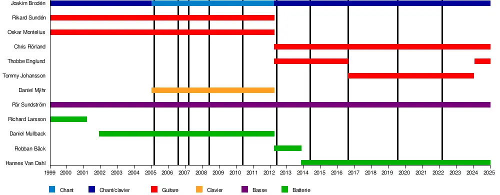 - Joakim Brodén — chant, Clavier (instrument) (depuis 1999)