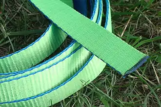 Deux types de sangles semblent se démarquer : les sangles plates appréciées pour leur élasticité moyenne et leur résistance à l'abrasion, et les sangles tubulaires appréciées pour leur élasticité importante (qui les rend difficiles à utiliser en longline) et leur confort.