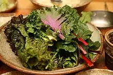 Ssam dans lequel est ajouté un gimchi de chou chinois.