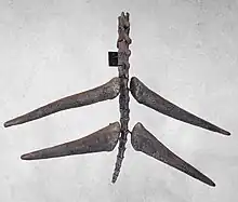 4. Depuis les années 1970, le réexamen de certains spécimens a permis d'apporter une nouvelle hypothèse, selon laquelle les plaques étaient alignées en quinconce sur deux lignes, tout le long de la colonne vertébrale. De plus, on a découvert que chez un même individu les plaques n'avaient ni la même forme, ni la même taille[16].