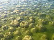 - la variété « botryoïde » produite par une association de diatomées et de cyanobactéries. Ces massifs qui sont toujours immergés (jusqu'à 4 m de fond) sécrètent un film important de mucus. Ils peuvent être colonisés par des algues du genre Acetabularia.