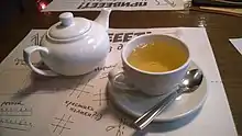 Le thé Oolong, Wulong, Wu Long, (chinois simplifié : 乌龙茶 ; chinois traditionnel : 烏龍茶 ; pinyin : ; litt. « thé dragon-corbeau »[note 1]) ou thé bleu est un type de thé à oxydation incomplète, à mi-chemin entre le thé vert, non oxydé, et le thé noir, complètement oxydé. Ce type de thé, emblématique du Fujian et de l'île de Taïwan qui lui fait face, est également désigné sous le nom de thé bleu-vert (青茶, )[1], ainsi que comme thé semi-oxydé.