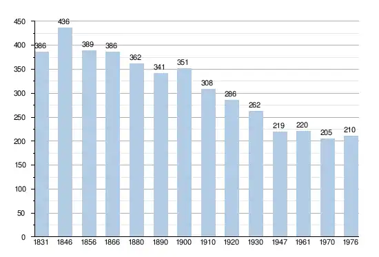 - Sources : INS, Rem. : 1831 jusqu'en 1970 = recensements, 1976 = nombre d'habitants au 31 décembre.