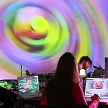 Le VJing est un terme large qui désigne la performance visuelle en temps réel. Les caractéristiques du VJing sont la création ou la manipulation de l'image en temps réel via la médiation technologique et en direction d'un public, en synchronisation avec la musique. Le VJing a souvent lieu dans des évènements comme des concerts, clubs, festivals de musique, et en général associé à une autre performance artistique. Cela donne lieu à une performance multimédia qui peut inclure de la musique, des comédiens, des de ou danseurs en même temps que de la vidéo live ou pré-enregistrée.