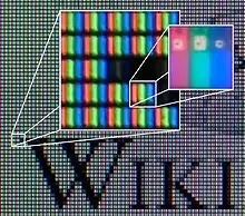 - (Technologie) Structure d’écran, de capteur, d’image numérique, etc. qui a plusieurs pixels chacun composé de trois sous-pixels rouge, vert et bleu.