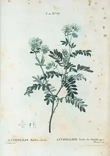 - (Botanique) Espèce d’anthyllide, arbrisseau vivace, aux feuilles composées à plusieurs folioles étroites et allongées, velues, et à têtes de fleurs papilionacées jaune clair.