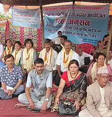 Des personnes réunies lors d'une grève de la faim en Inde.