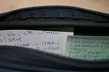 - (Argot) (Bretagne, Vendée, Normandie, Île-de-France) (Éducation) Pense-bête contenant des informations utiles que l’on dissimule pour tricher à un examen scolaire.