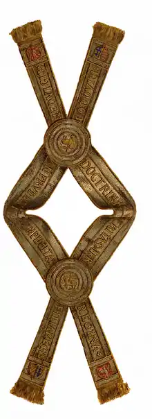 - Morceau d’étoffe carré, que le grand prêtre des juifs portait sur la poitrine et qui était orné de douze pierres précieuses sur chacune desquelles était gravé le nom d’une des douze tribus d’Israël.