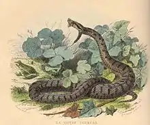 - (Zoologie) Synonyme de vipère aspic (espèce d’animal).